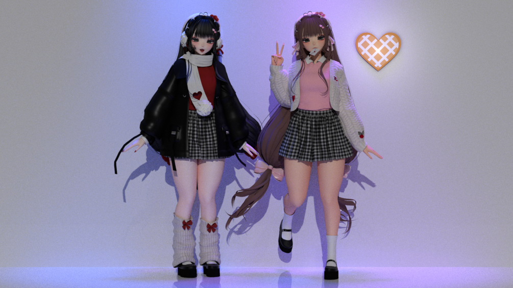 Cardigan, beret, ear muffs, leg warmers, scarf, heart clips- rinebean#1111